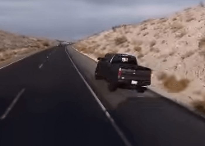 According to the video description: “This pick-up truck did not have the patience to wait for one truck to pass another. The passing truck was going a decent speed up the hill. Fortunately, there was nothing stopped on the shoulder – getting in front of trucks seems to be more important than staying alive. People risk their lives every day to be in front.”