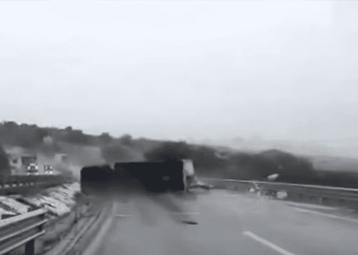 Watch as the heavy winds from Hurrican Patricia toss a moving box truck like a toy!
