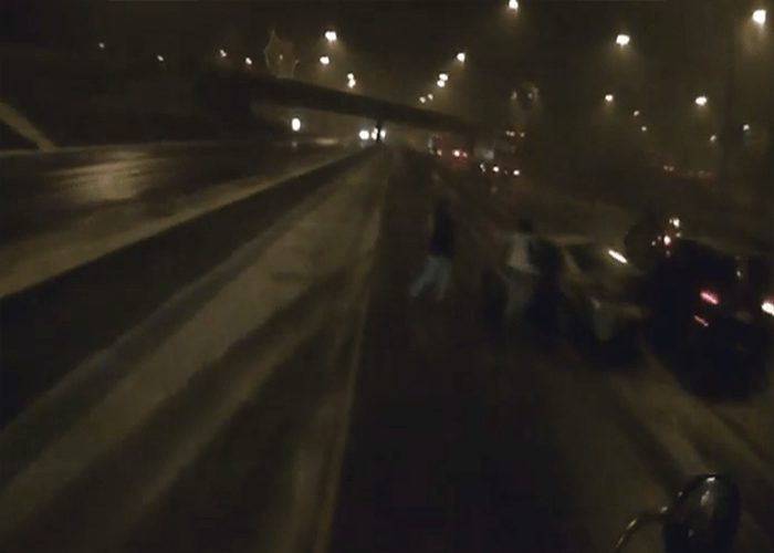Just a reminder to look twice, truck drivers! People in dark clothes are hard to see at night!