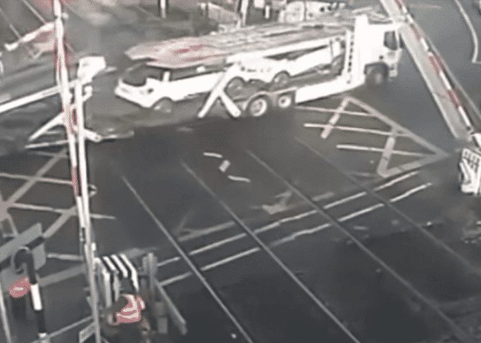 Railroad authorities have released this video to shame the truck driver, who they have publically called a “truckwit.”