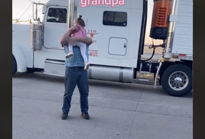 A TikTok user shared heartwarming video of a toddler and her trucker grandpa reuniting when he gets home from work.