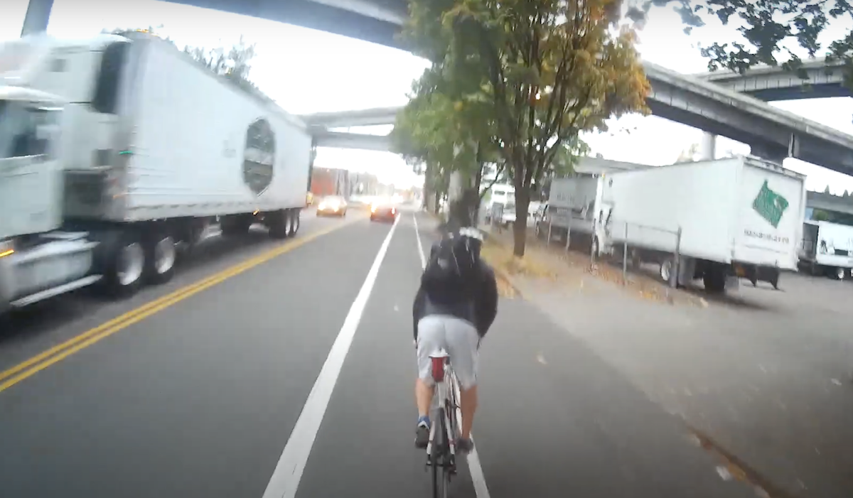 Expansion of Oregon bike lanes leaving no room for semi trucks as buffer zones, bike lanes encroach into space for traffic.
