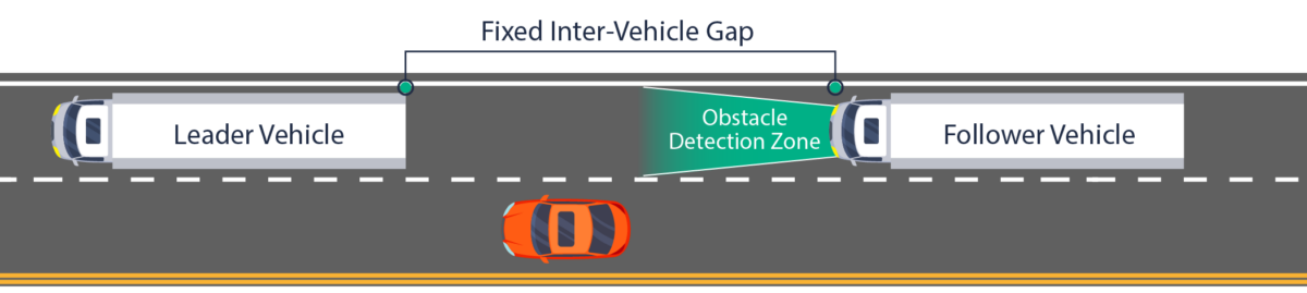 The “follower” truck can automatically steer, accelerate, and brake as it travels behind the lead truck.