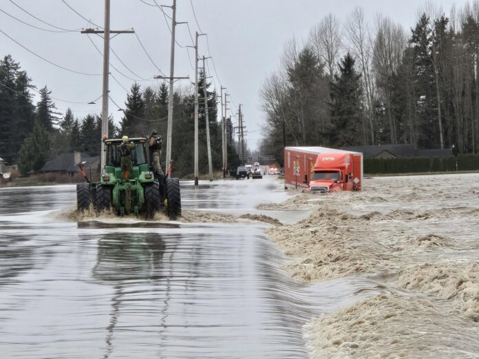 As CBP’s Air and Marine Operations were on hand to assist Blaine Sector Border Patrol with assessing the flood damage, agents spotted a a semi truck trapped by “dangerous” flood waters, officials said on December 14.