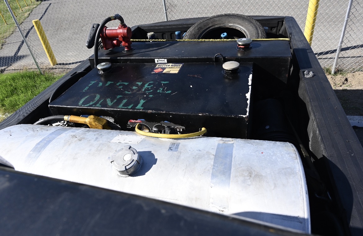 An investigation was launched, and KCSO identified four suspects using trucks to steal diesel fuel. KCSO said the suspects used several vessels, including fuel tanks and five-gallon water bottles loaded in the bed of two pickup trucks, to hold the stolen fuel.