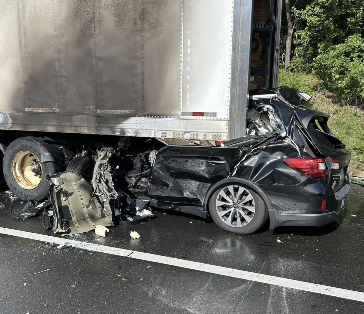 VSP said that a tractor trailer hauling biohazard medical waste was parked on the shoulder of the interstate for about 10 minutes when the trailer was struck by a Subaru Outback traveling at approximately 70 m.p.h.