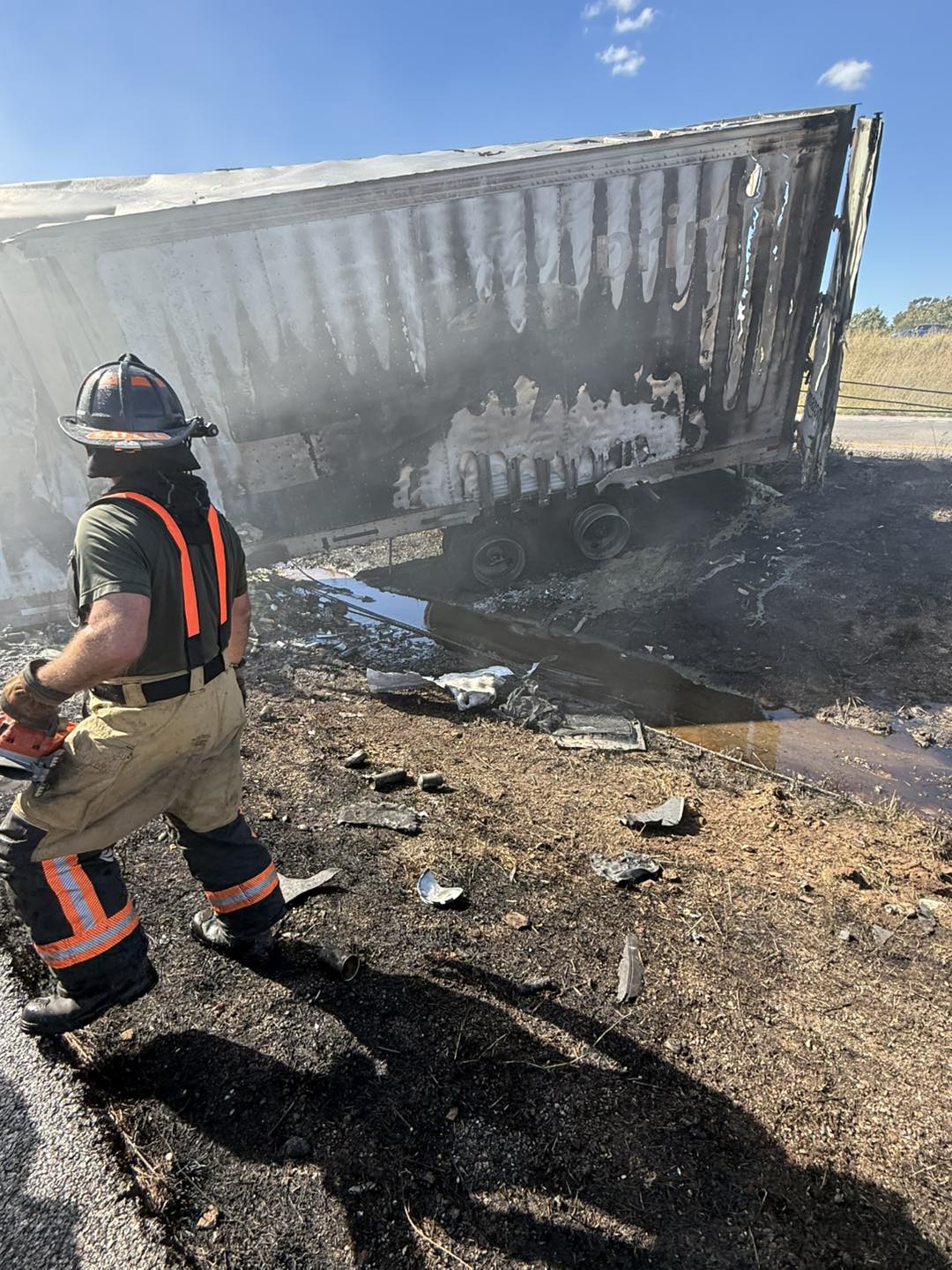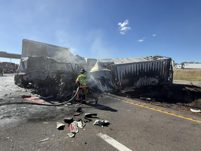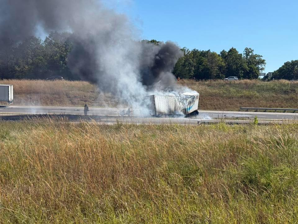 When crews from the Doolittle Rural Fire Protection District (DRFPD) arrived on scene, they found “a heavily involved tractor trailer blocking both directions of I-44 and two other tractor trailers roadside.”