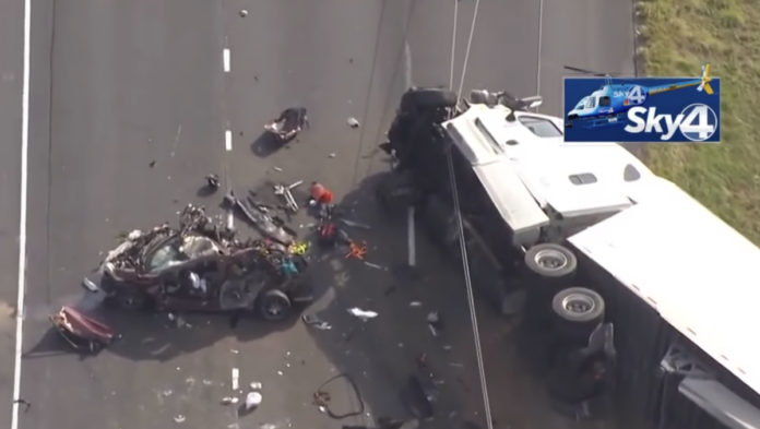 According to Fox Carolina, a Honda sedan was slowed for construction traffic on northbound I-85 when a tractor trailer rear ended it, pushing it into a 2019 Chevrolet pickup truck. That pickup was then pushed into a 1998 Chevrolet pickup truck. The semi truck and the Honda then crashed through the cable barrier in the median and struck a 2015 Chevrolet pickup on the southbound side of of the highway.