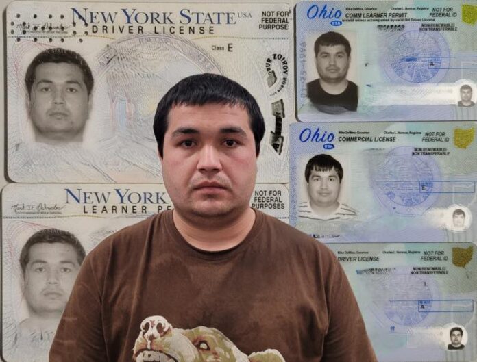 An image shared by Border Patrol shows a New York Learner’s Permit, a New York Driver’s License, an Ohio Driver’s License, an Ohio Commercial Learner’s Permit, and an Ohio Commercial Driver’s License (CDL).