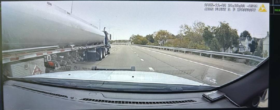On Sunday, November 2, 2025, a Dayton Police officer encountered a semi truck traveling on US-35 “that was completely loaded with fuel, and the vehicle was weaving in his lanes of travel.”