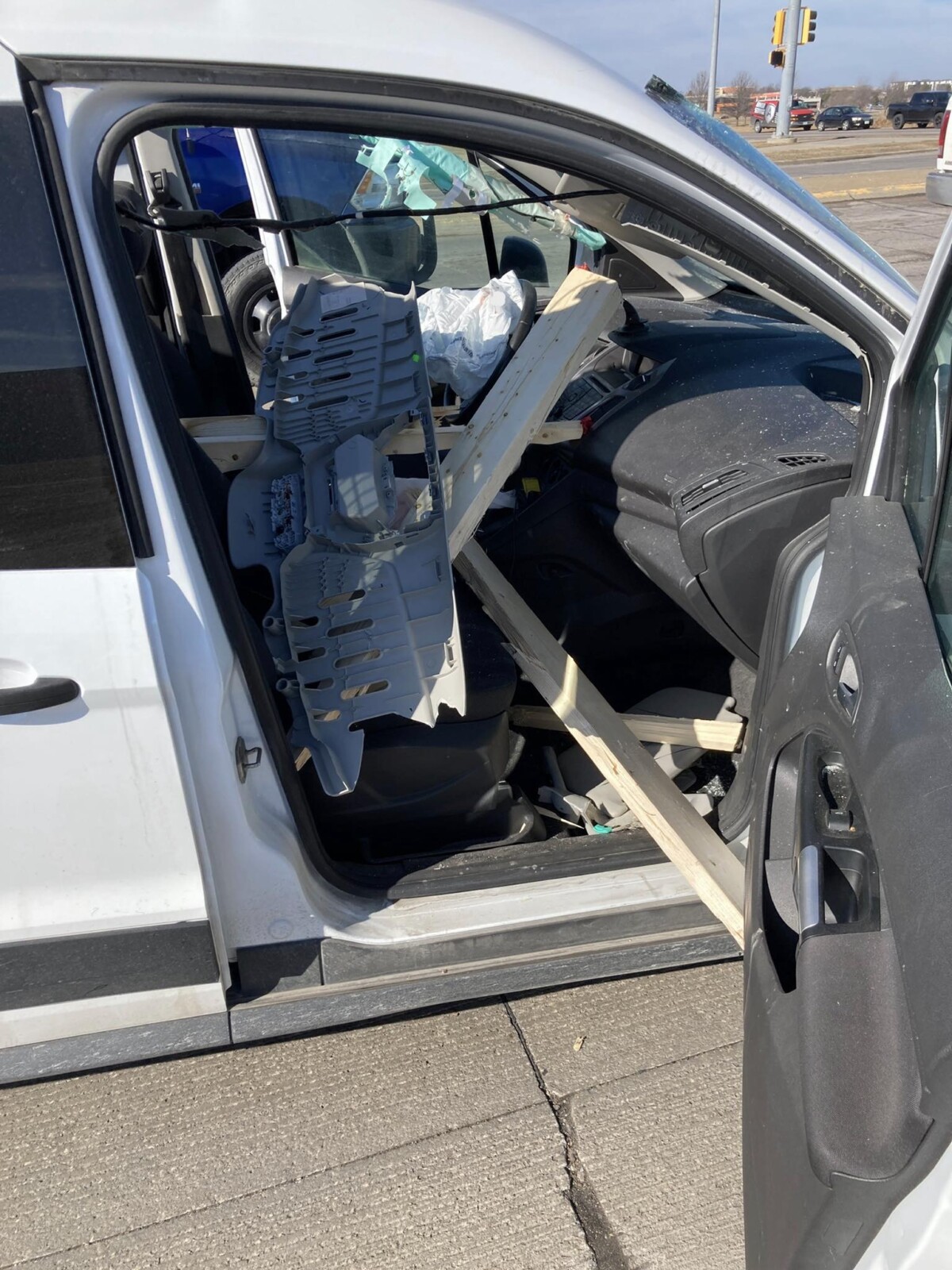 Troopers did not report injuries but said that the crash resulted in significant damage to both the passenger vehicle and the load of roof trusses.