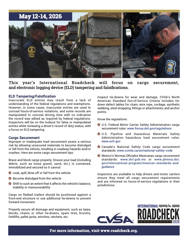 Check out the flier below for load securement tips from the CVSA ahead of Roadcheck.