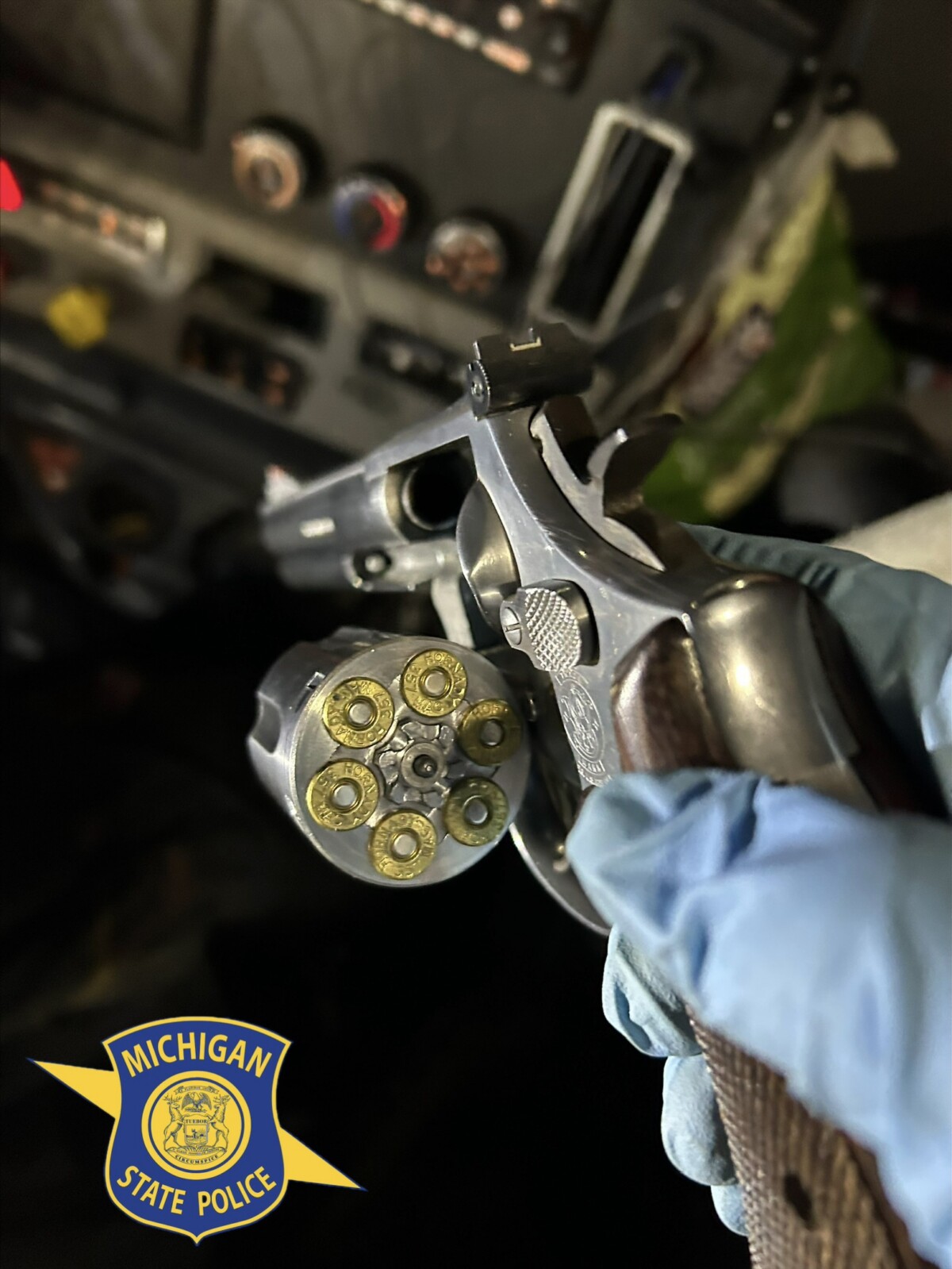 “In addition to the weapons violations, the driver was found to be in possession of two open containers of alcohol. A subsequent inspection of the commercial vehicle also indicated the driver had allegedly falsified his electronic logging device records,” MSP’s Eighth District said in a news release.