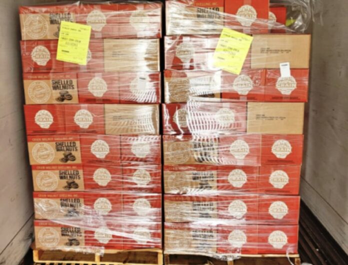 A shipment containing 60,000 pounds of shelled walnuts was stolen from two 52-foot trailers.