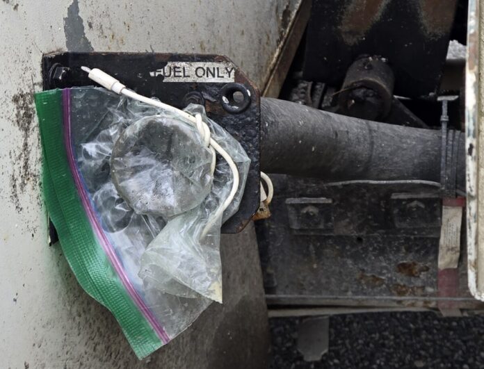 - A fuel cap was missing and covered with a sandwich bag, which was secured with a cell phone charging cable.