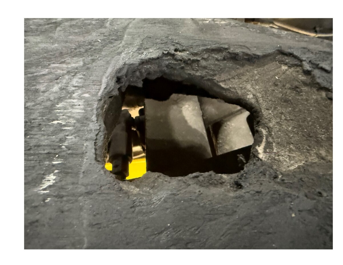 In a March 22 social media post, CHP’s Cordelia Commercial Vehicle Enforcement Facility said that a “Commercial Vehicle Inspection Specialist (CVIS) located a serious defect on this tractor’s fifth wheel plate. Corrosion combined with repeated kingpin contact created a 3-inch diameter hole in the plate.”