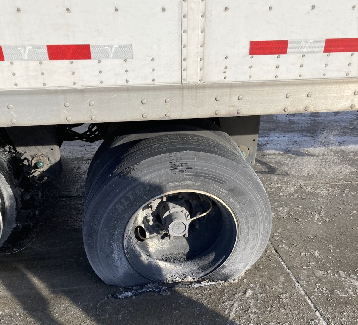 On Monday, March 16, 2026, the Iowa State Patrol Commercial Motor Vehicle Unit inspected a commercial truck with significant tire defects along I-80/35.